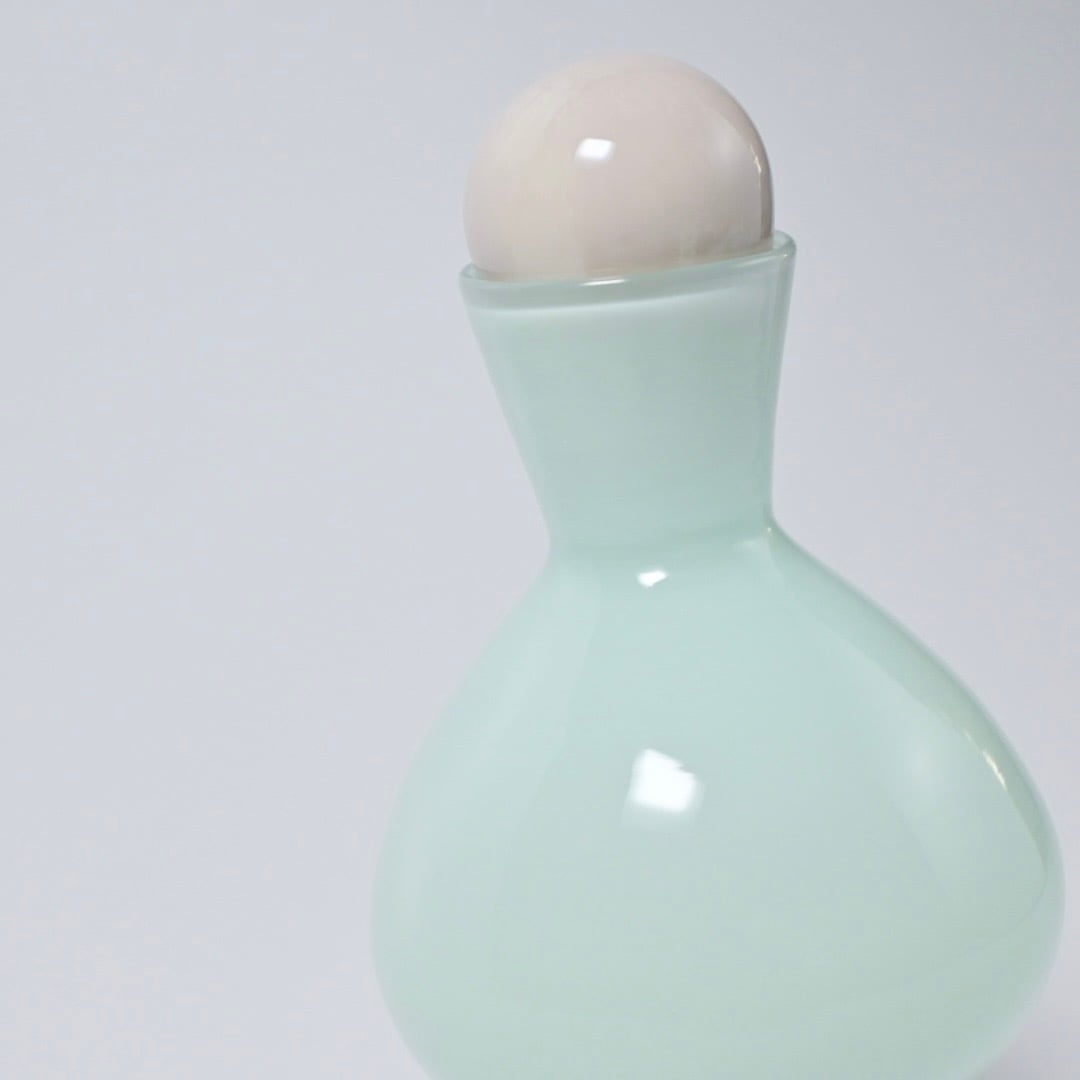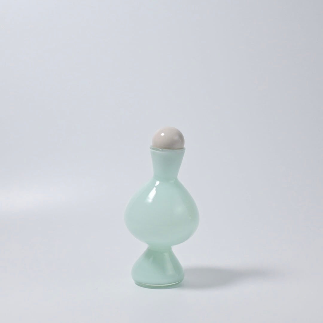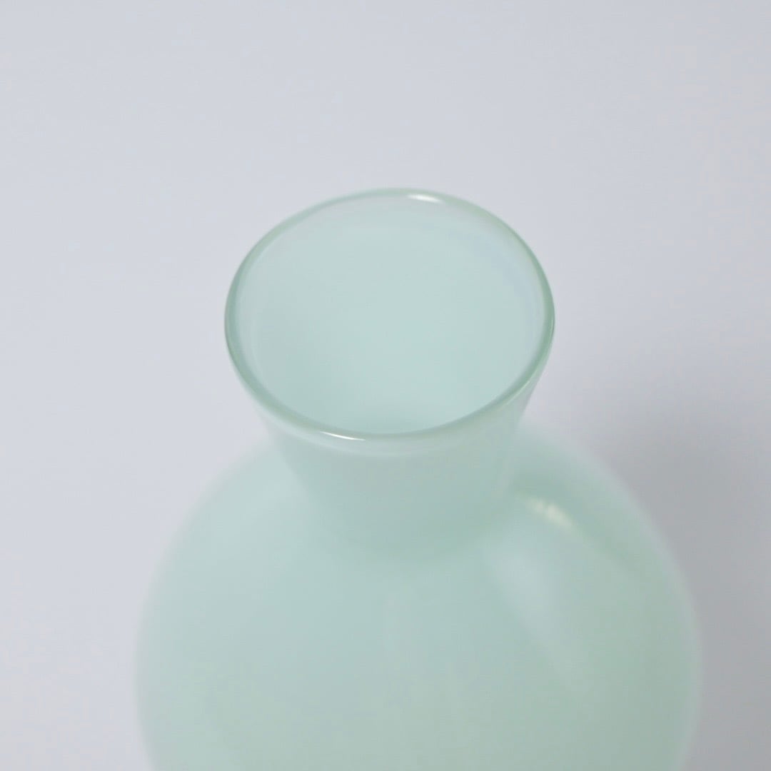 ミントカラーとまるいフォルムが何とも愛らしい瓶です。蓋付でオブジェとして。