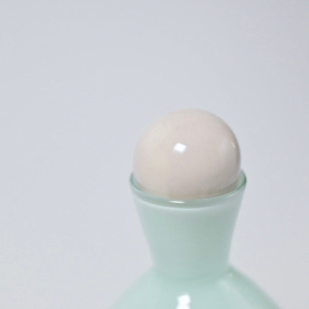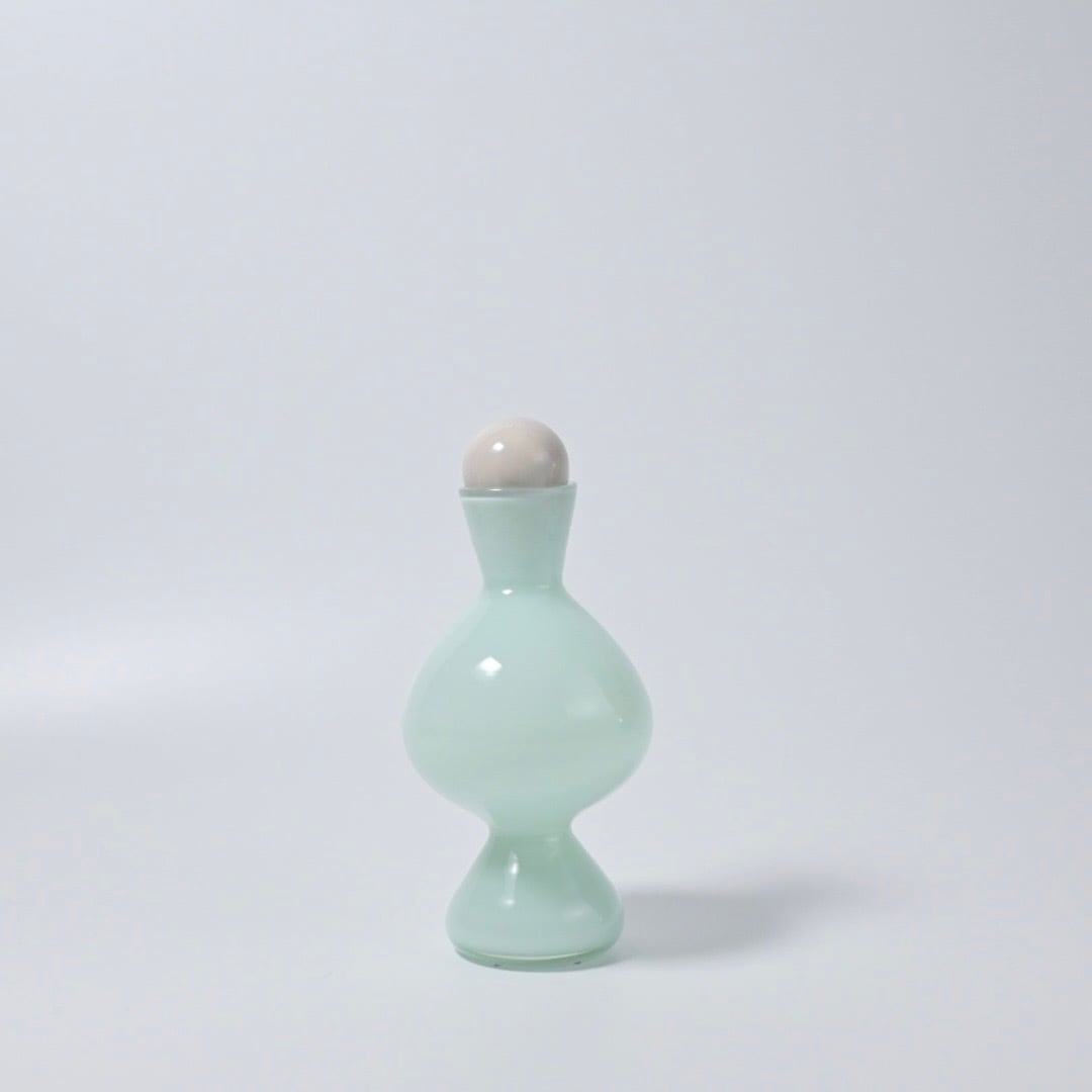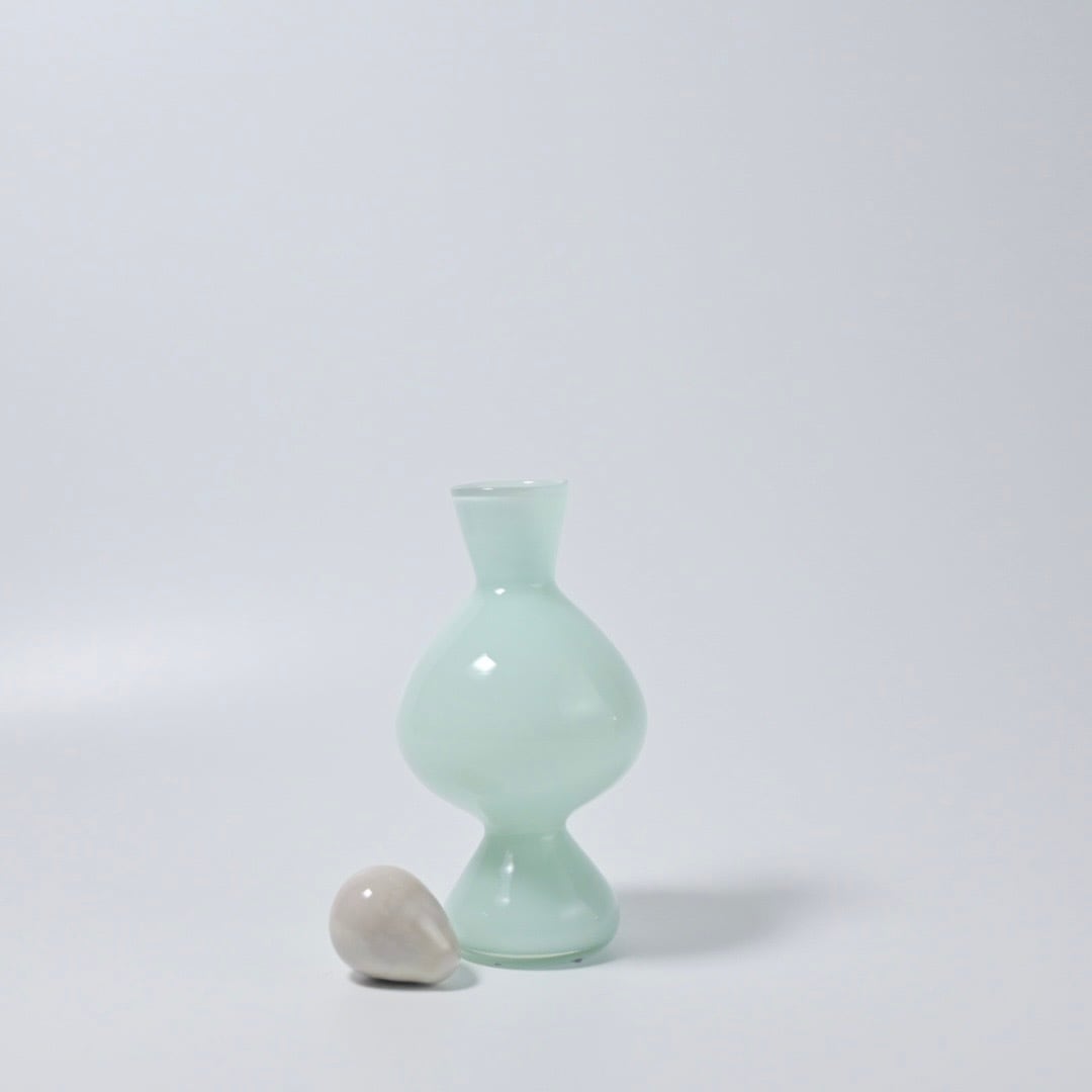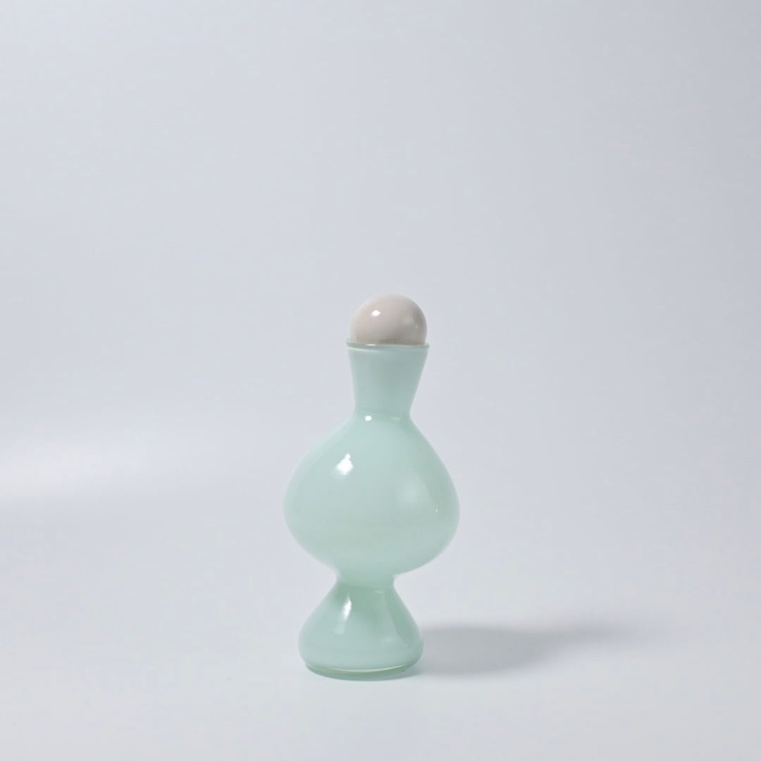 ミントカラーとまるいフォルムが何とも愛らしい瓶です。蓋付でオブジェとして。