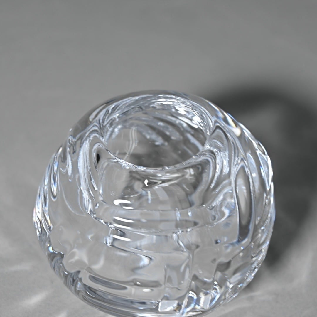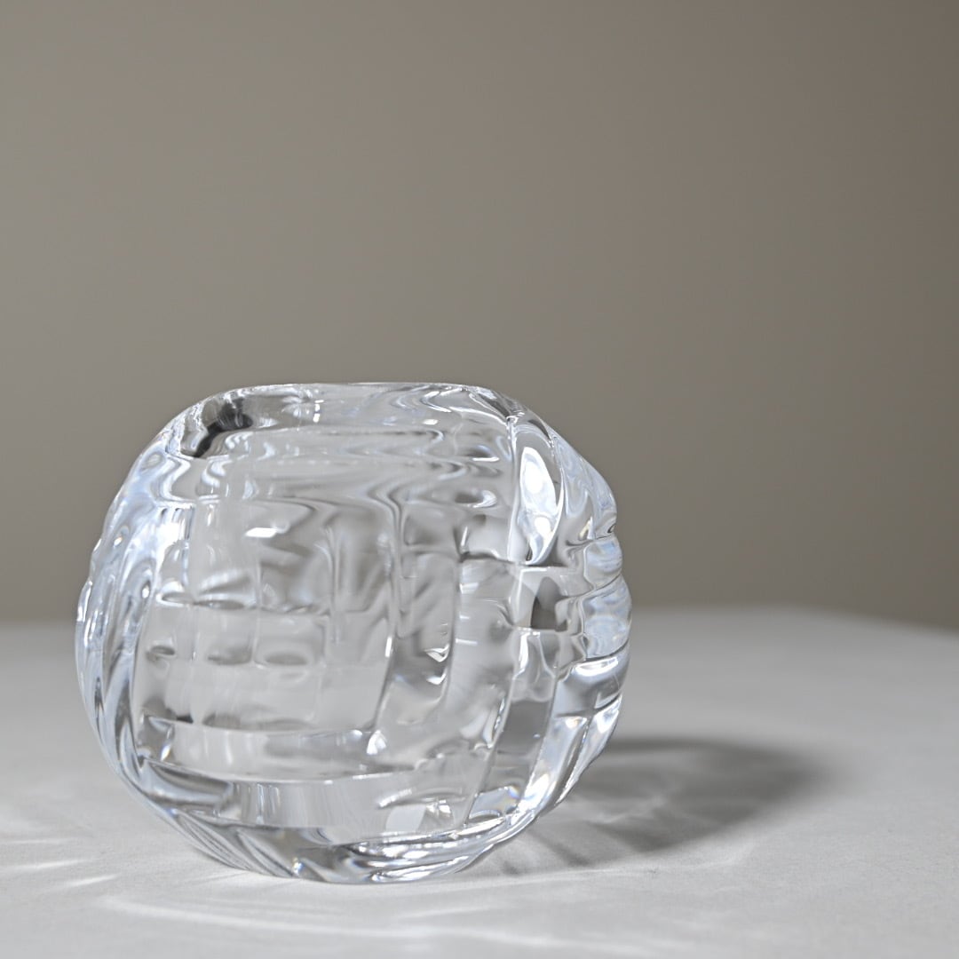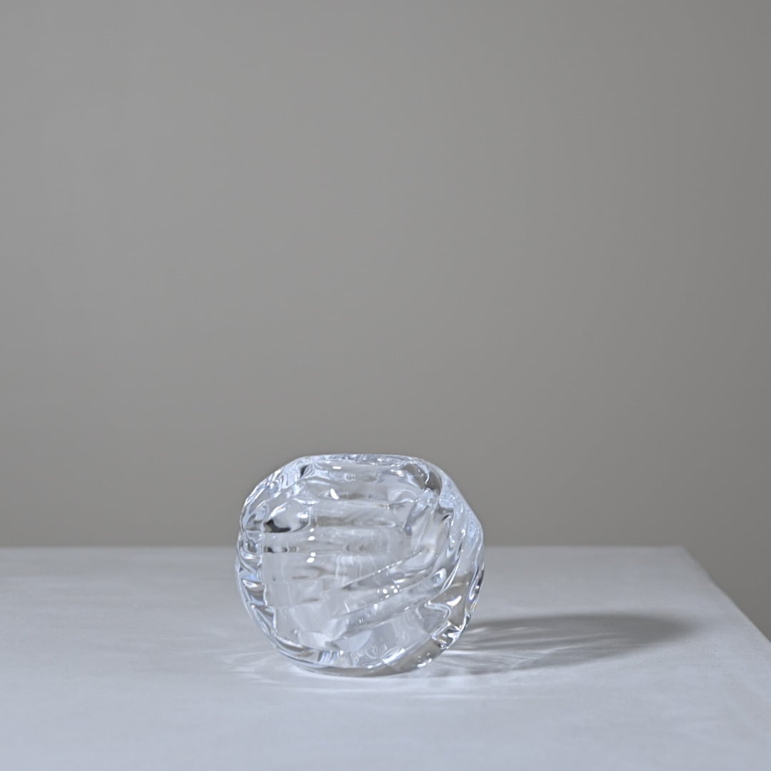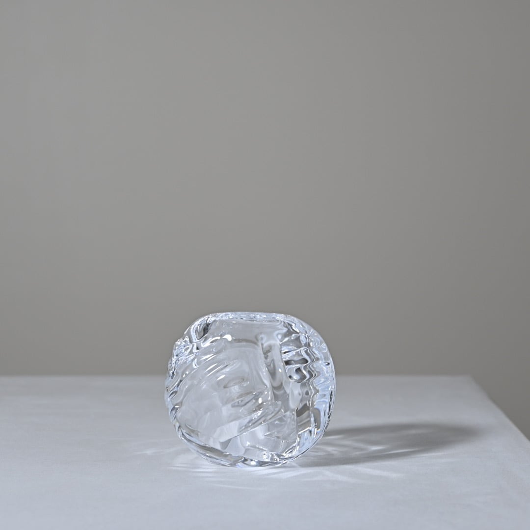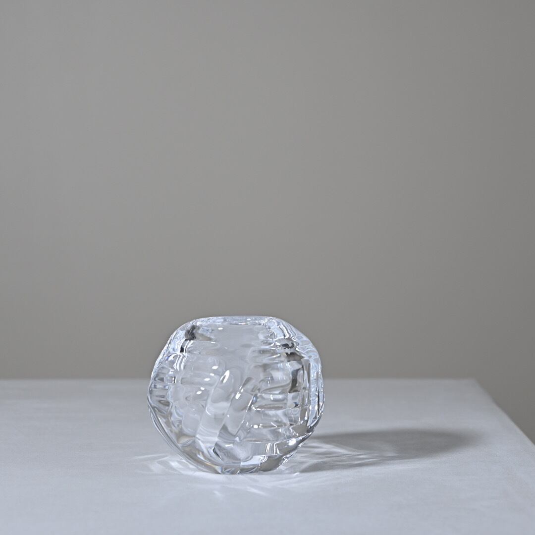 イワタルリ Ruri Iwata ガラスの透明度を生かした「スキ」という技法でつくられた花器。コロンとした愛らしい丸みが特徴で、掌にほどよく収まるようなサイズ感。お花はもちろん、ストックのお香などを立ててもお使いいただけます。 Φ約8cm ×7.5cm H約6.5cm 内口径 約3cm