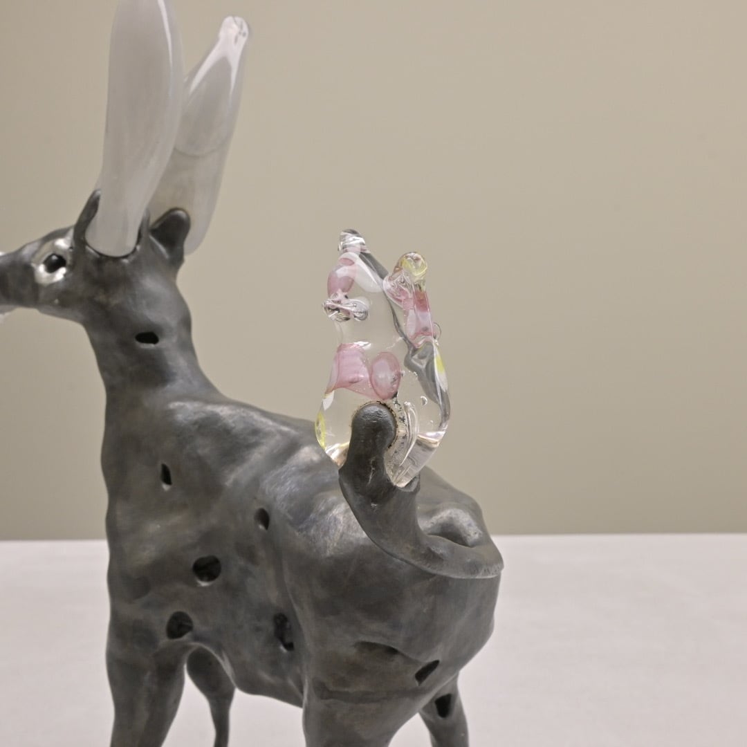 透明感あふれるガラスが装飾され、目には小さなオニキスが。