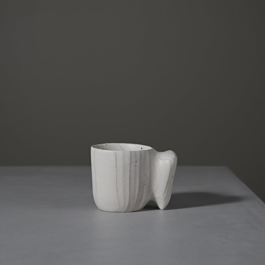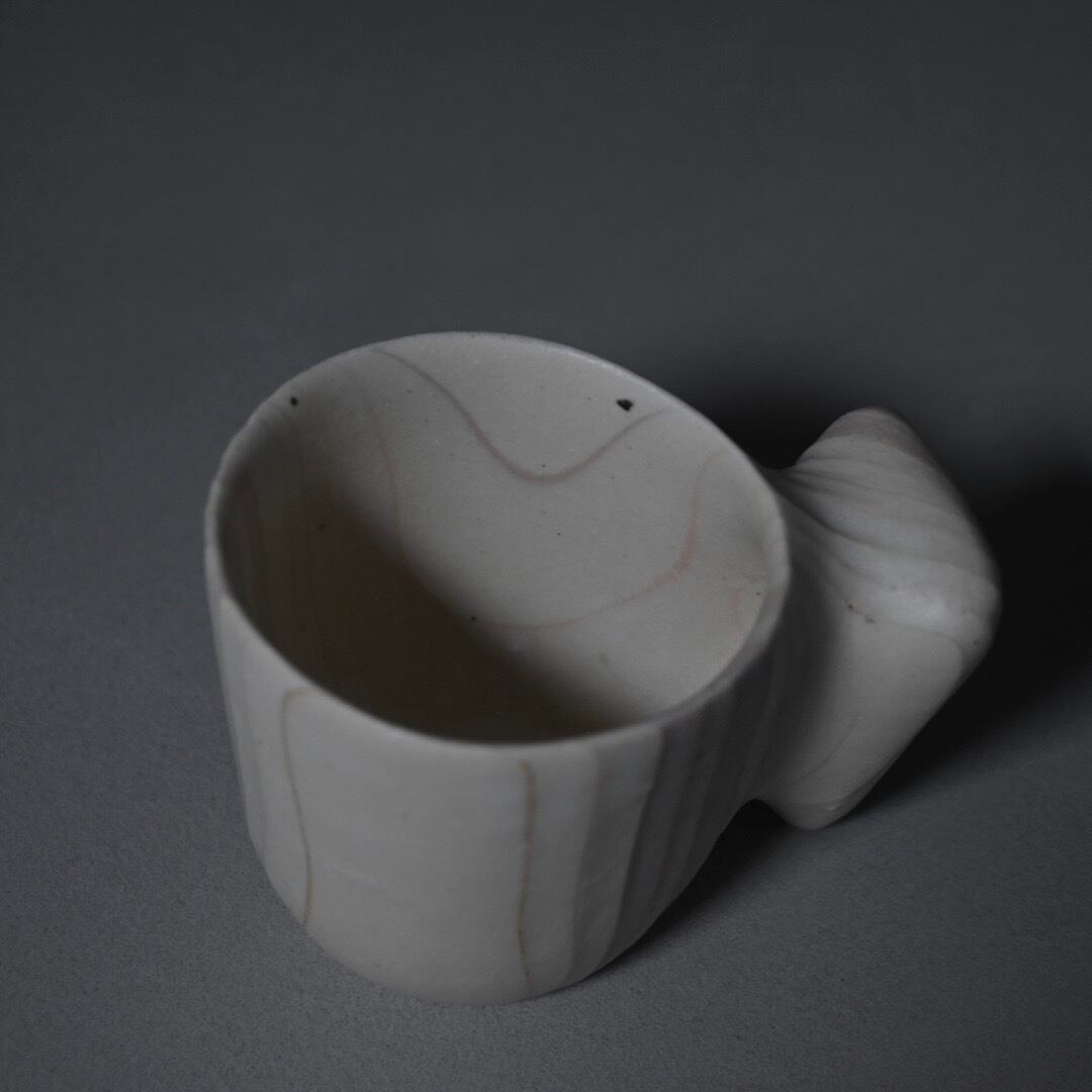 小さなカップの持ち手はボディから柔らかな曲線で続いており、内側は空洞になっています。