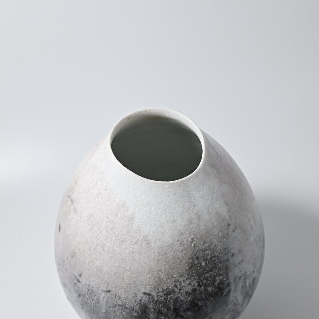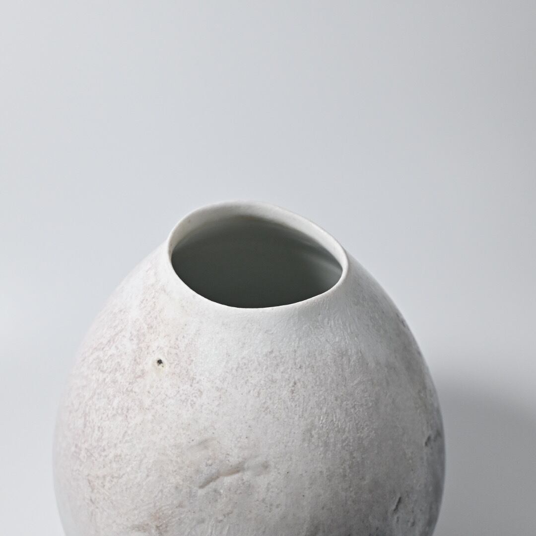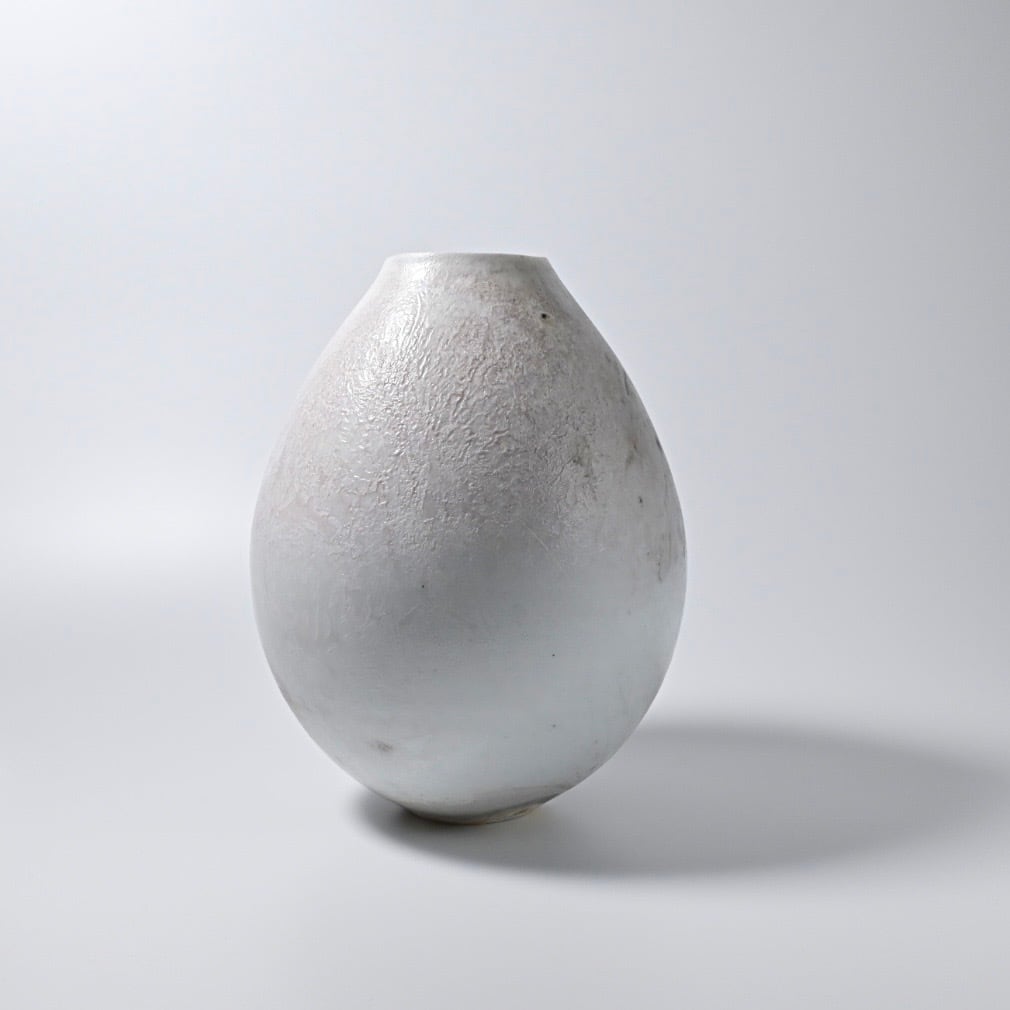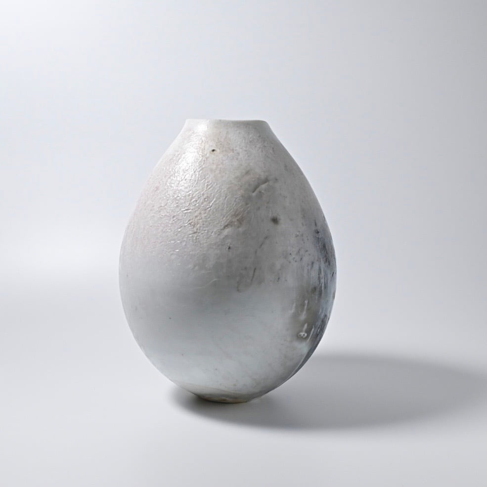田淵太郎 Taro Tabuchi 揺ぎ無く一貫して白磁の薪窯焼成を追求し続けている田淵さんの作品です。 白磁の窯変、色の濃淡や淡いピンクが美しくそれに負けない造形は研ぎ澄まされた美しさです。 最大約W17×D17×H21.5cm