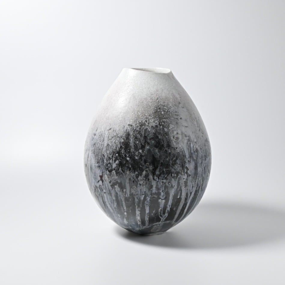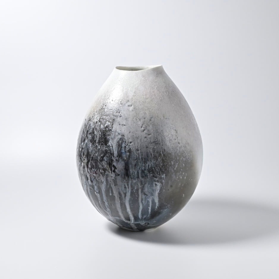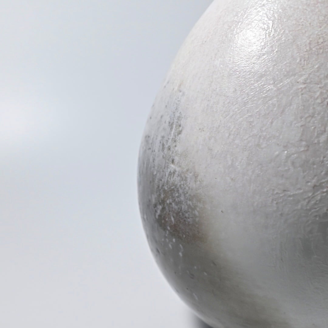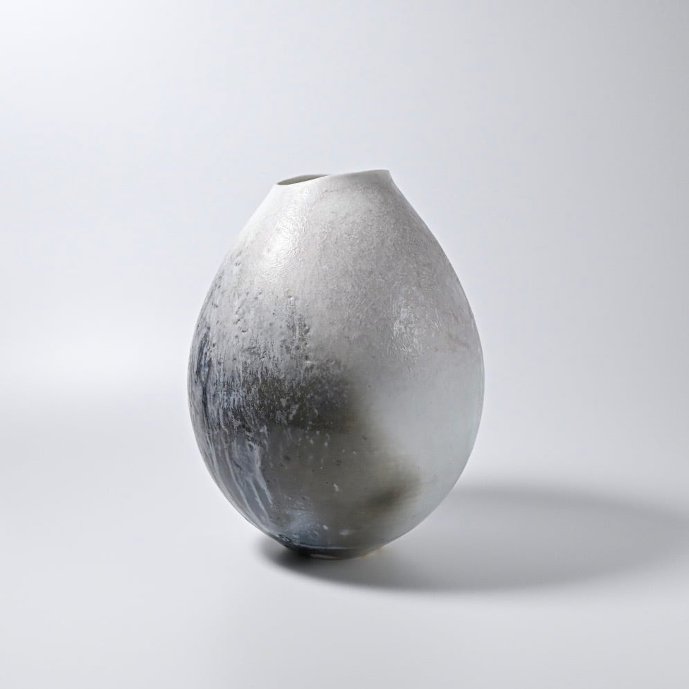 田淵太郎 Taro Tabuchi 揺ぎ無く一貫して白磁の薪窯焼成を追求し続けている田淵さんの作品です。 白磁の窯変、色の濃淡や淡いピンクが美しくそれに負けない造形は研ぎ澄まされた美しさです。 最大約W17×D17×H21.5cm