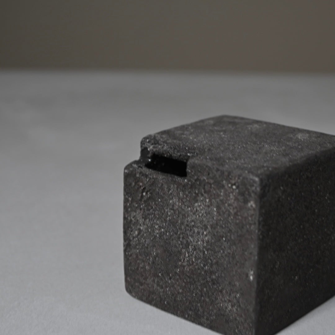 「コロ」シリーズはたたらの技法により制作されています。シリコンガラス薬をかけ防水加工を施してあるので花器として水をいれてもご使用いただけます。