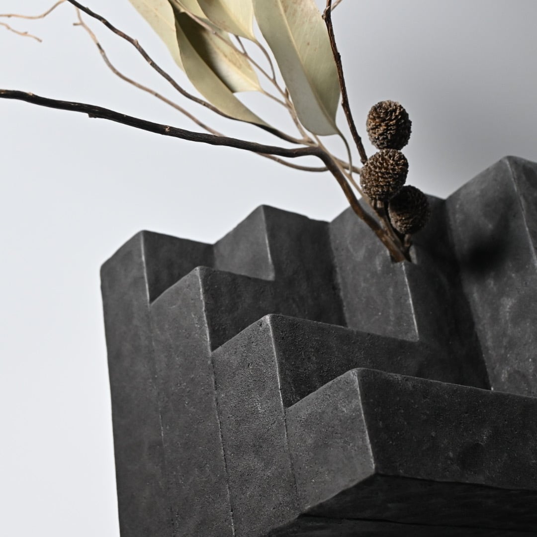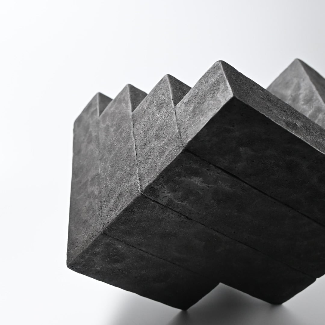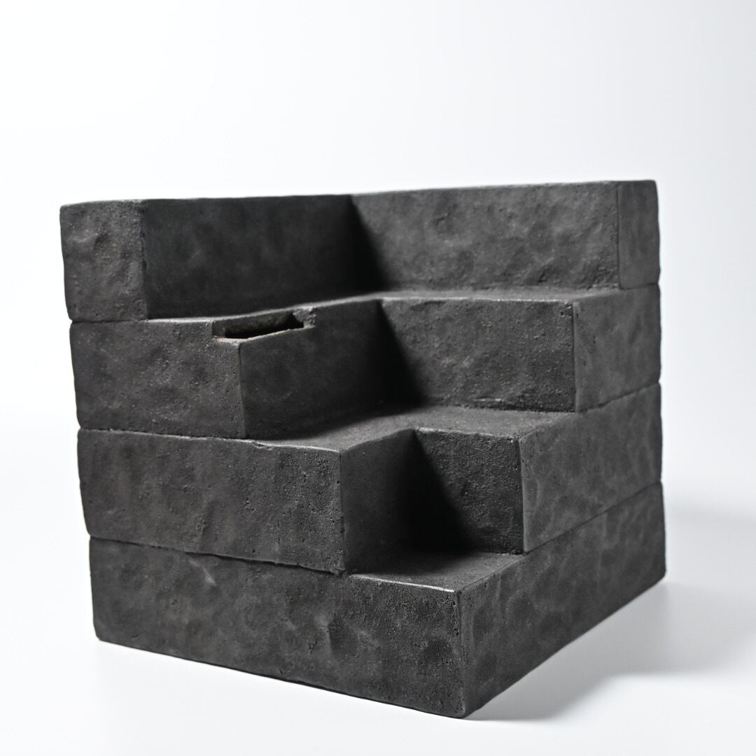 竹内紘三 Kouzo Takeuchi 陶土にて石造建築、遺跡を思わせ、時の流れを封じ込めたような作品の現蹟シリーズ。 絶対的な存在感を持ちながらも、どこか自然に馴染んでいく土くさい質感と洗練されたモダンさが調和した奥深い作品です。 最大約W18.5×D18.5×H18.5cm