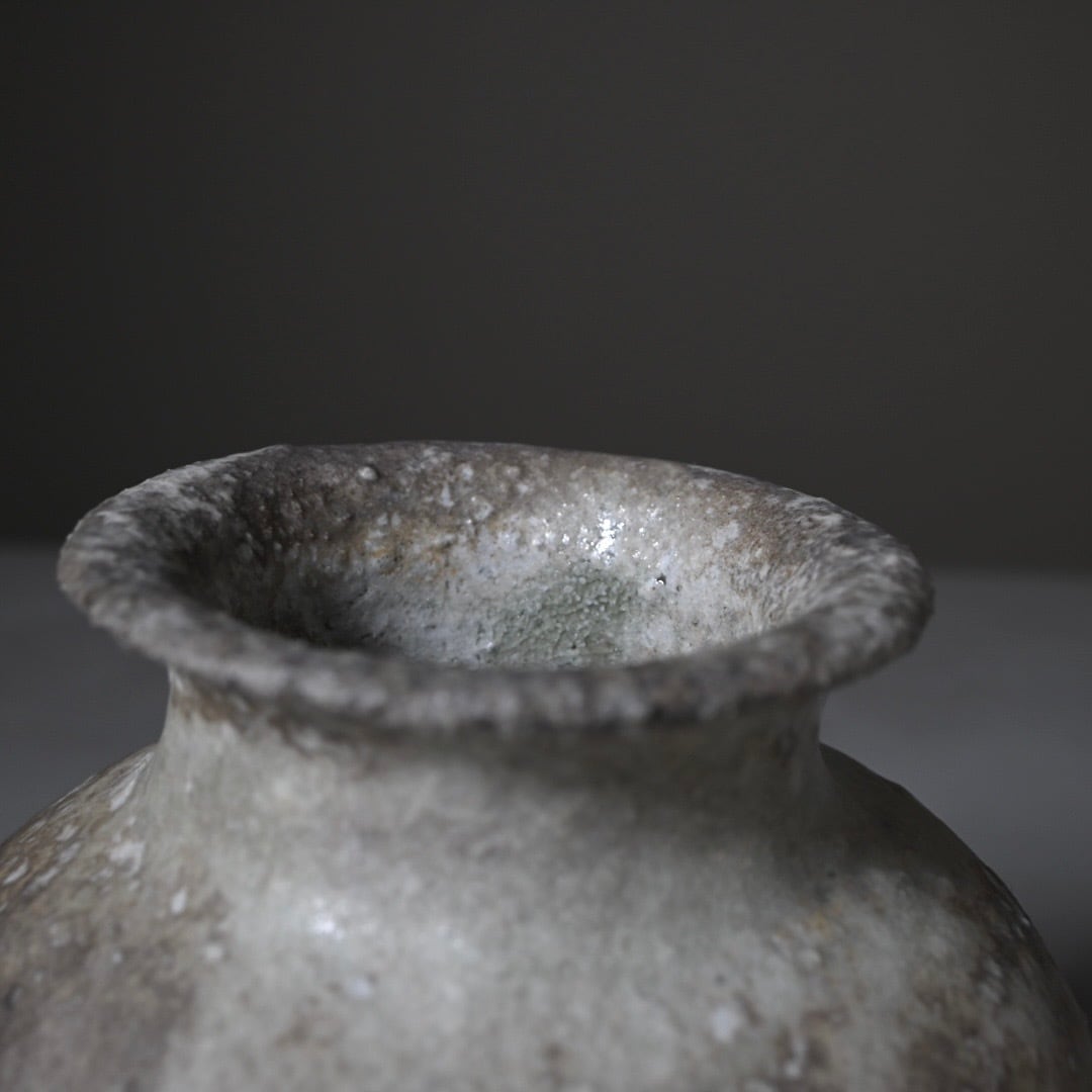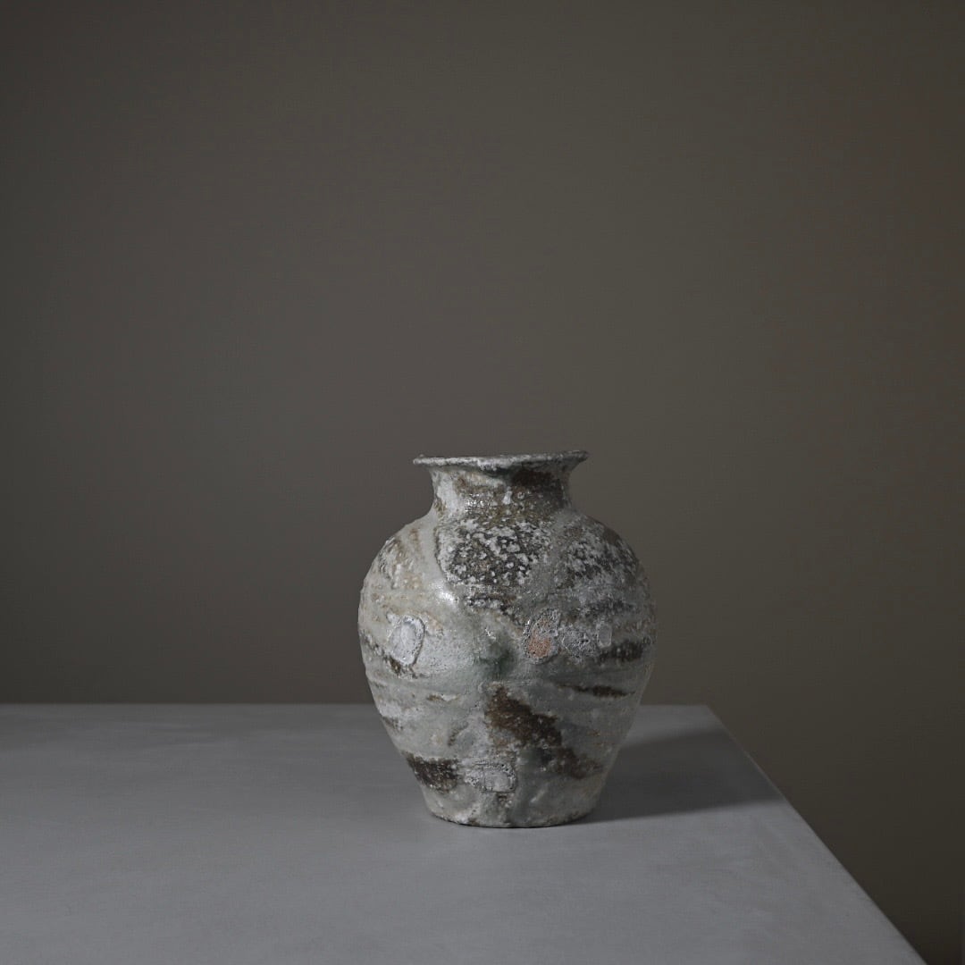 デレック ラーセン Derek Larsen 栗の木を燃やすことにより自然に発生する灰が作品にかぶって釉薬化する自然釉。 炎と自然が織りなし作家と共鳴する力強い作品です。 約W14.5×D14.5×H16.5cm 口径:約8cm(内径約5cm)