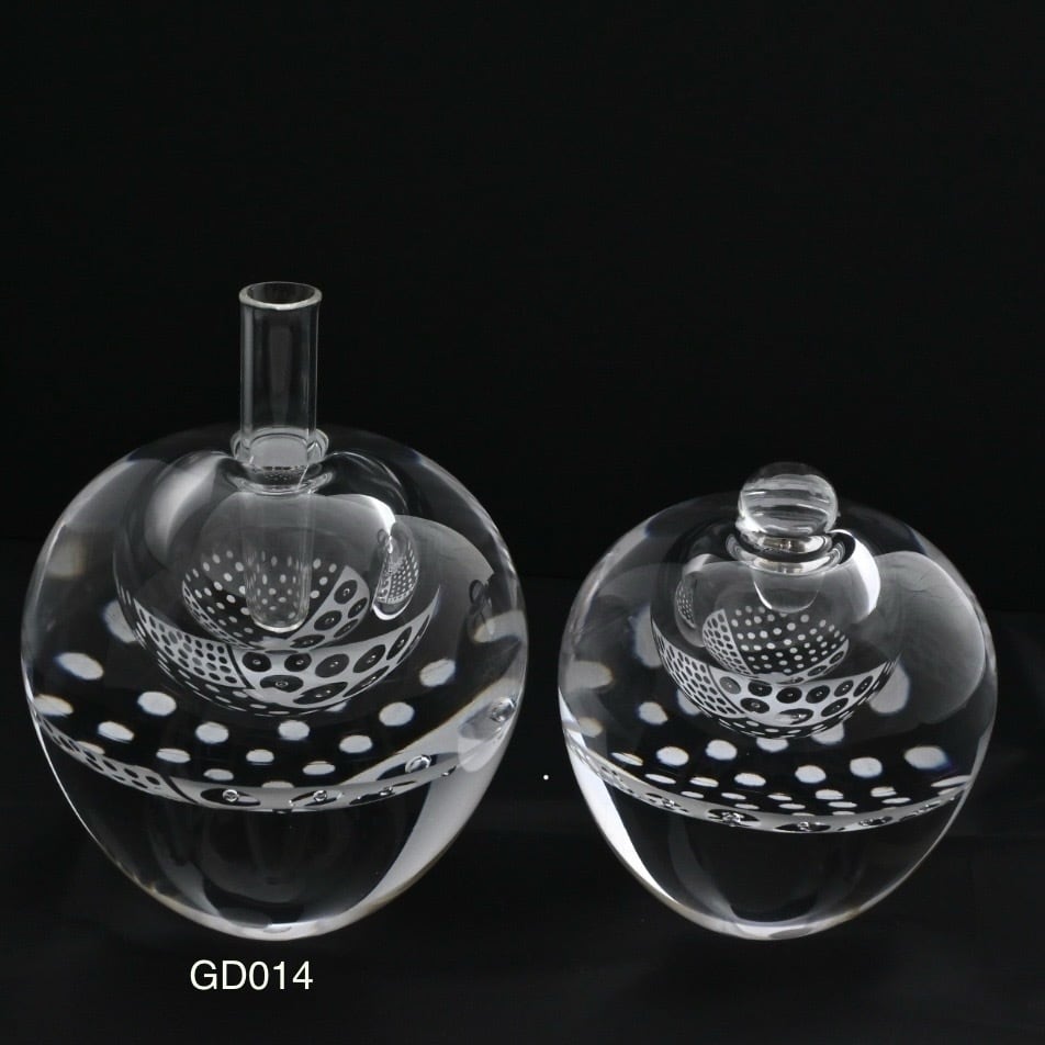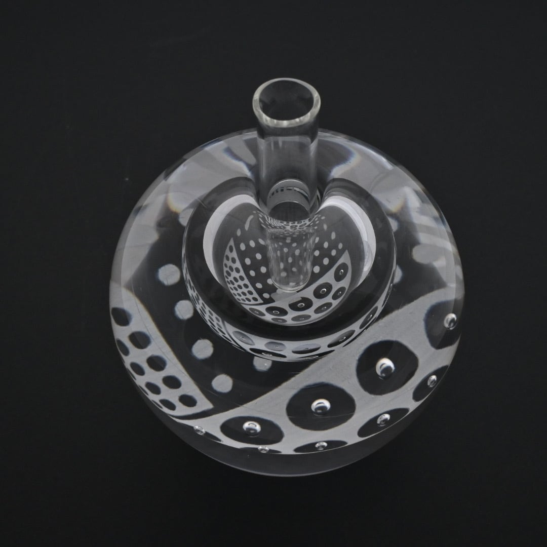 ドット模様と揃った空気泡が施された、ガラス本来の透明感と光を感じさせてくれる一輪挿し用途のあるオブジェです。光によって様々な表情を魅せ、生けた花や置く場所で異なる美しさをお楽しみいただけます。