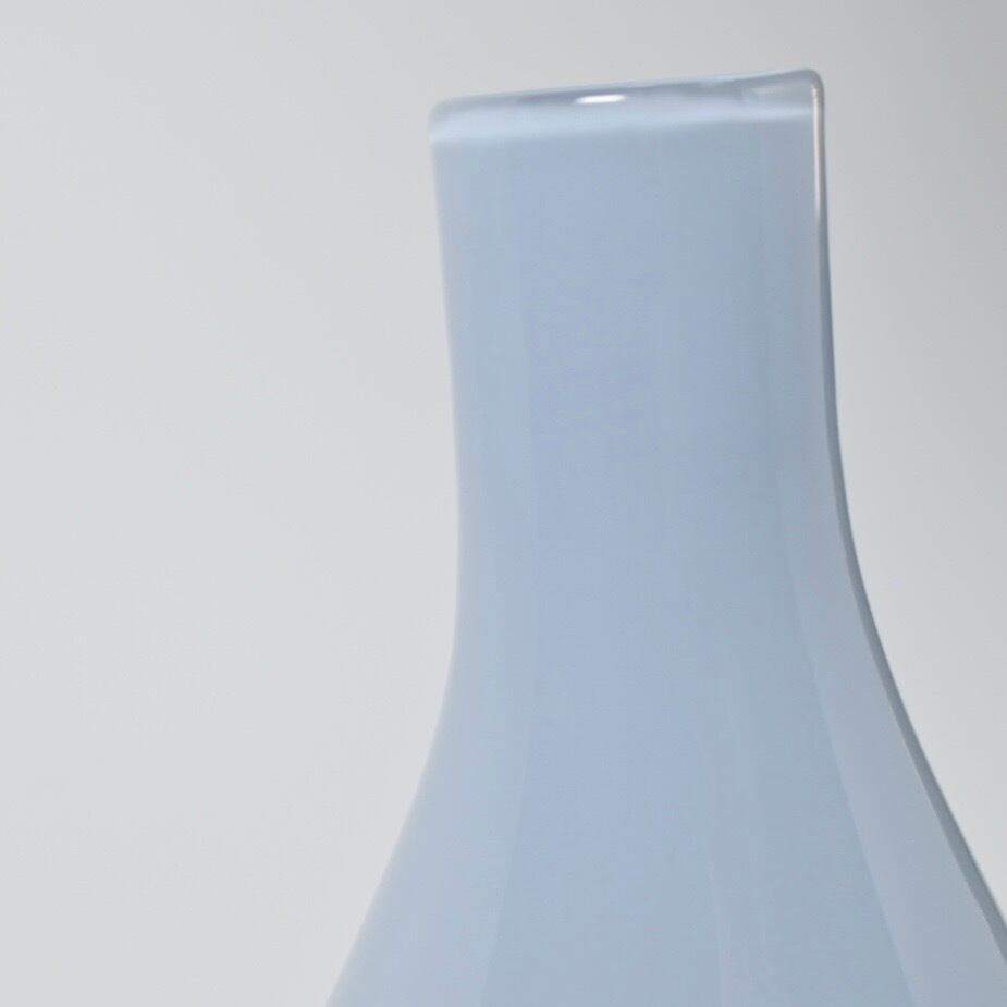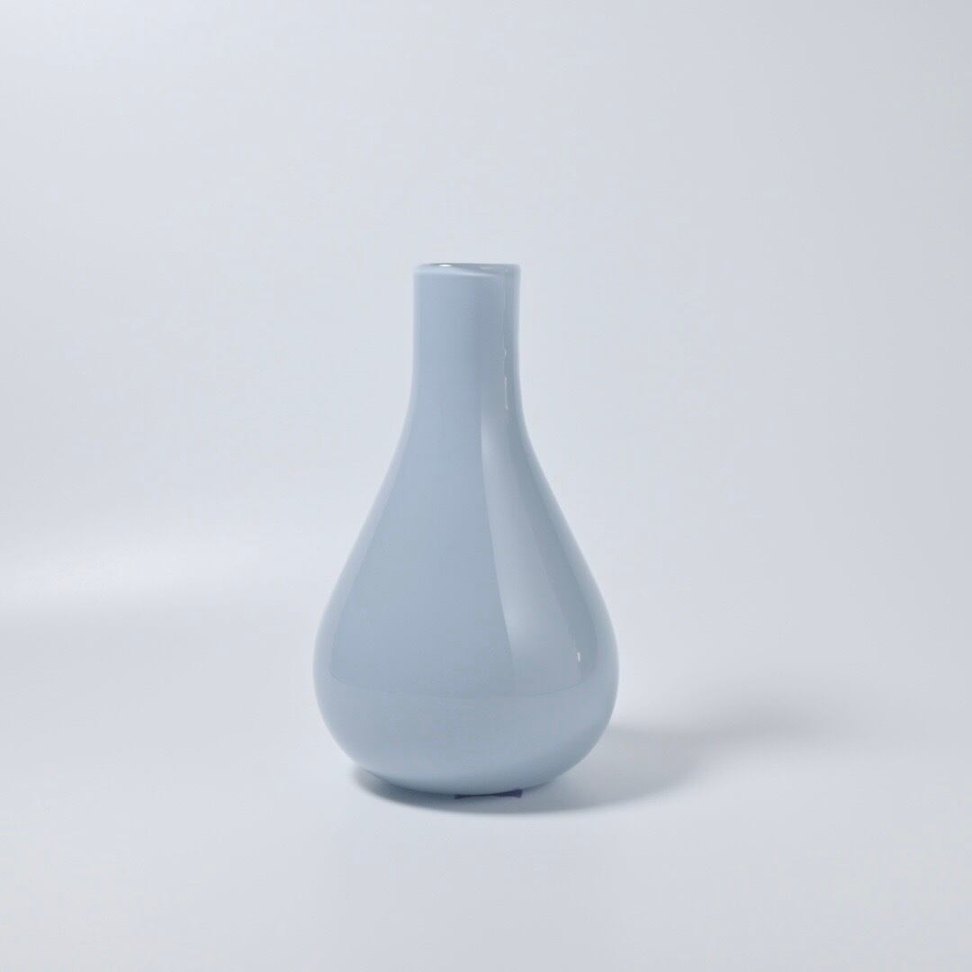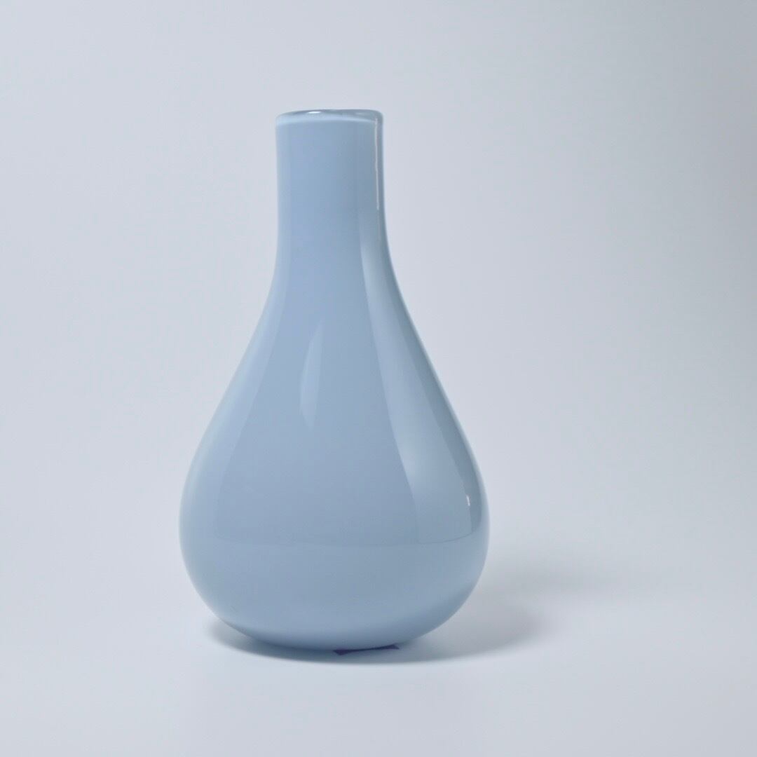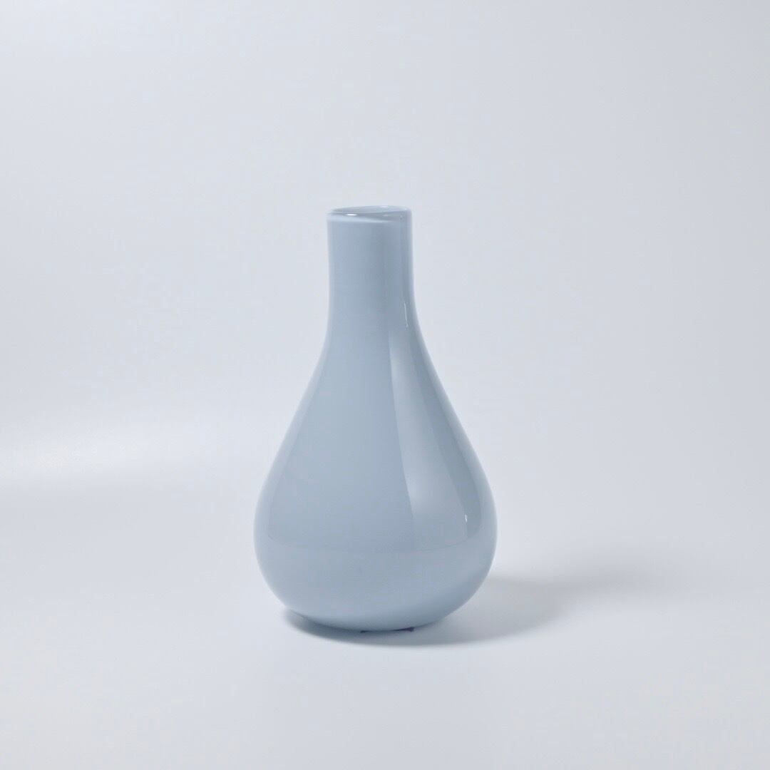 高橋禎彦 卓越した技術が生み出す“宙吹き”によって制作されています。ブルーグレーのような控えめで落ち着いた色合い、柔らかなフォルムの花器は、どんな空間にもなじみます。 最大Φ 約10cm H約17cm 口径 約2.8cm