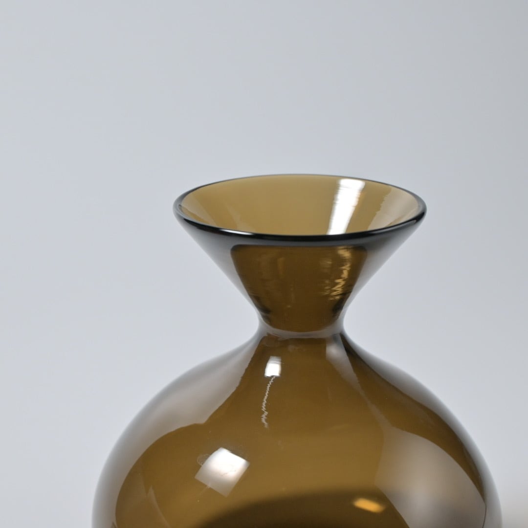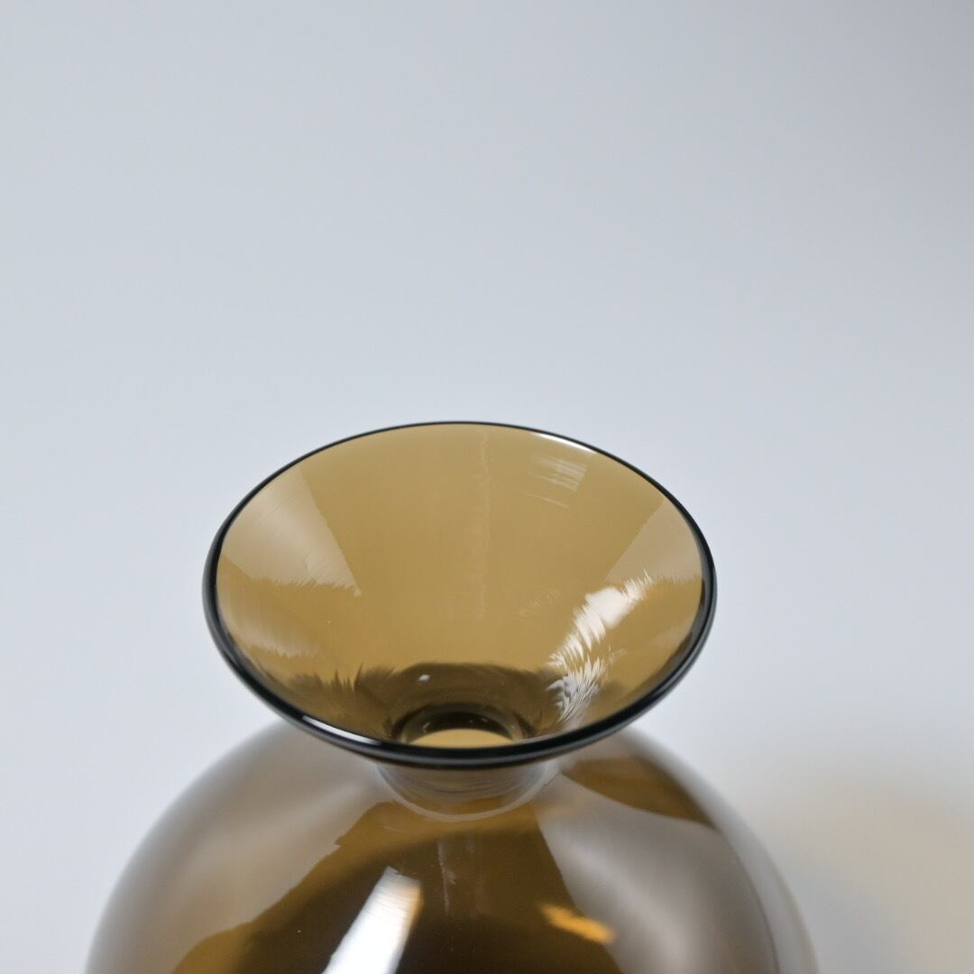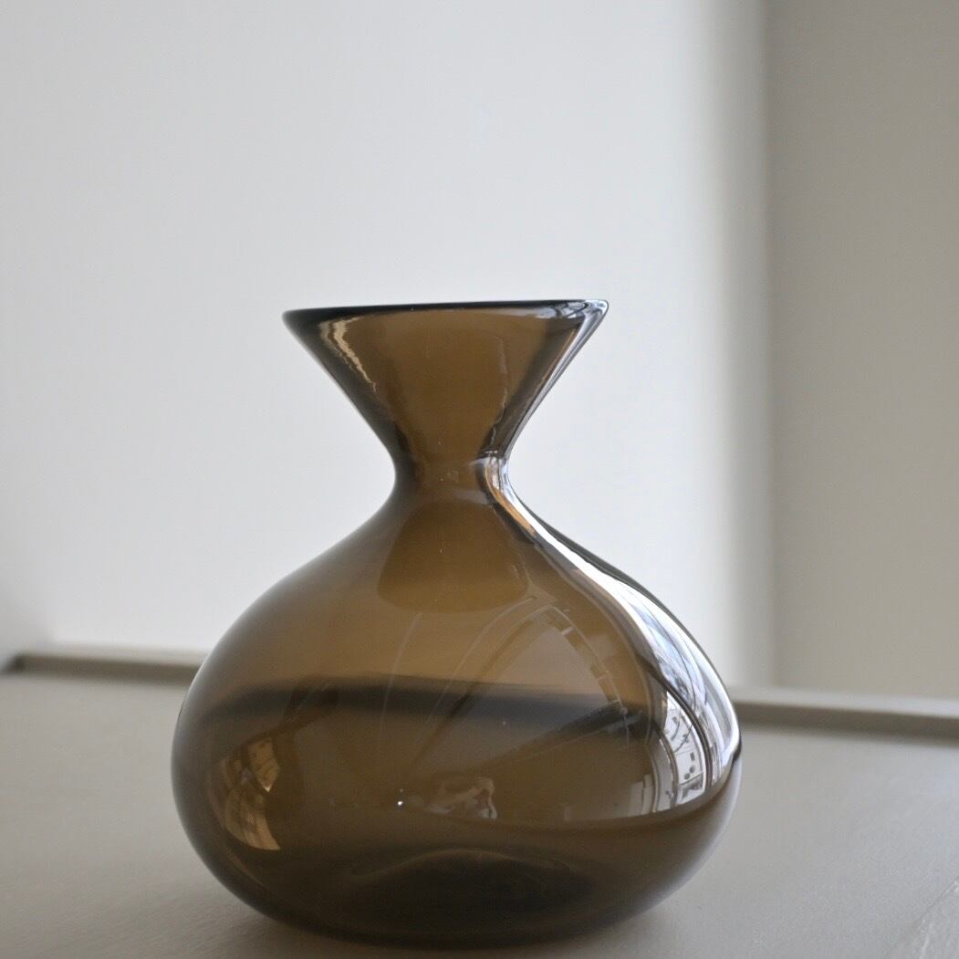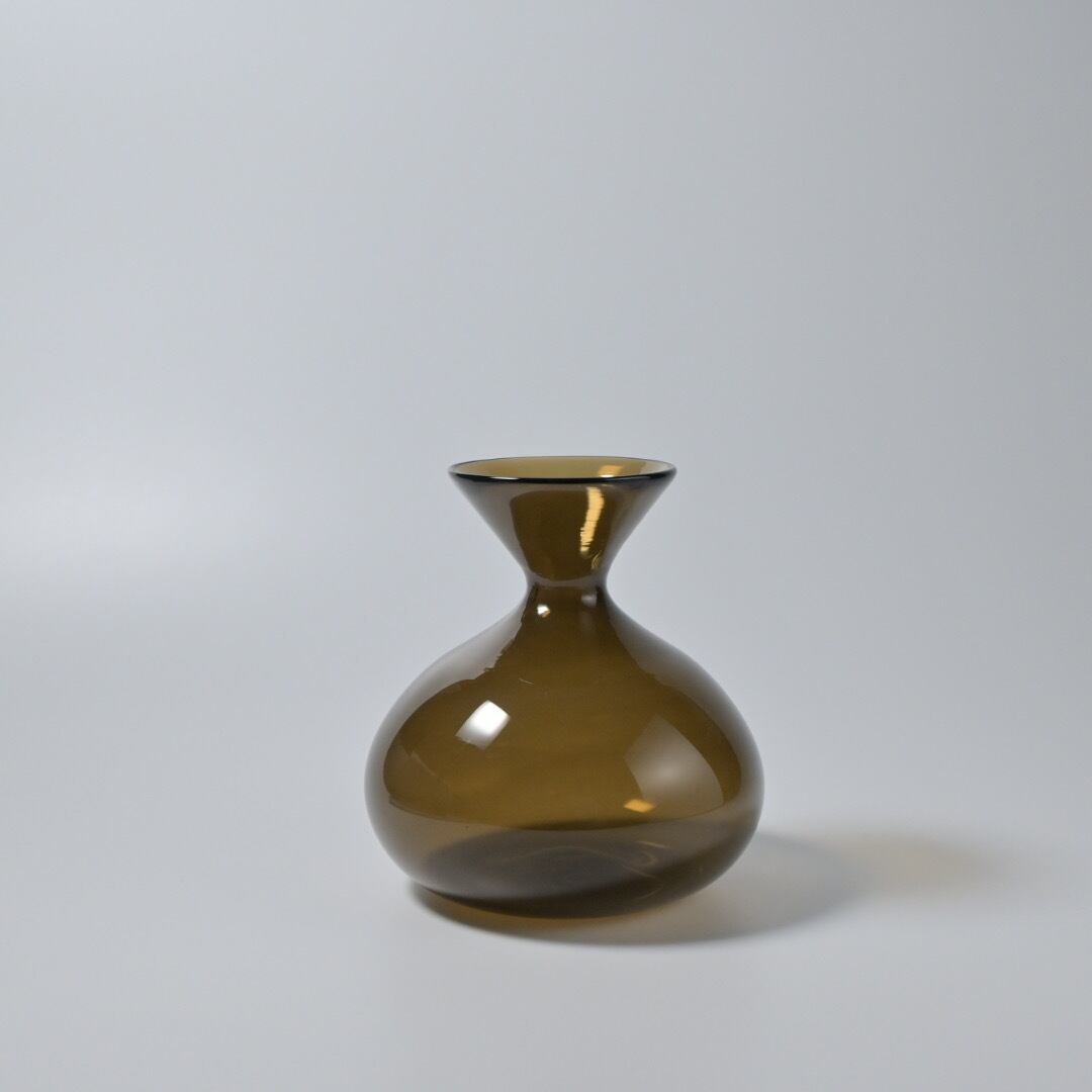 卓越した技術が生み出す“宙吹き”によって制作されています。徳利のような形の花器は、どんなお花にも調和し、飴グレーの控えめな色合いが、花の美しさを引き立てます。