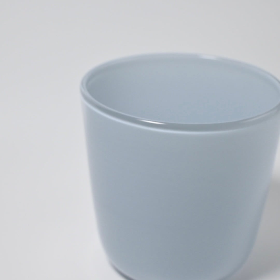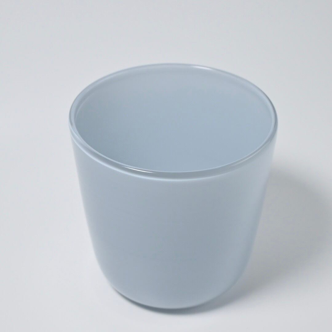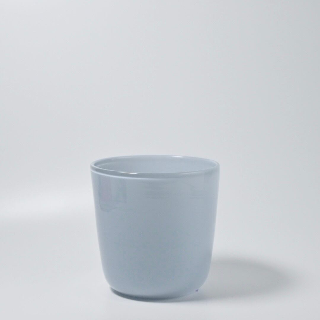 高橋禎彦 Yoshihiko Takahashi 円柱形のシンプルなブルーグレーの花器。自然に力を抜いて生けるのに最適。器としてもお使いいただけます。卓越した技術が生み出す“宙吹き”によって制作されています。 最大径 約10.5cm H約10.5cm